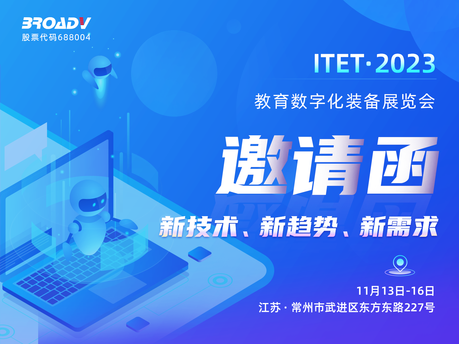 11月13日-16日,由江蘇省教育廳指導,江蘇省高等學校教育信息化研究會主辦的“教育數字化裝備展覽會”將在江蘇常州拉開帷幕,本次活動重點關注教育數字化、數字校園以及人工智能等前沿技術在高等教育教學實踐中的應用。博匯科技將攜智慧教學系列最新產品及解決方案亮相本次活動。